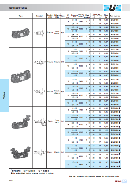 BE-3999-16 N. 50 ISO 1 SEALS BE-3999-20 REPAIR KIT ISO1-2 1P. BE-3999-23 ISO 1 COVER 2 POS. BE-3999-24 ISO1 COVER BE-3999-25 ISO1 COVER BE-3999-30 VALVE WITH CONN.M12 ON ISO VALVE B. BE-3999-50 REPAIR KIT ISO VALVE BE-4000 5/2 ISO2 MIX SOL/SPR BE-4000A 5/2 ISO2 MIX SOL/SPR MAN.1/2P BE-4000D 5/2 ISO2 MIX SOL/SPR SERV. BE-4000R 5/2 ISO2 MIX SOL/SPR M/L BE-4000T 5/2 ISO2 MIX SOL/SPR AMPL.M/1P BE-4000U 5/2 ISO2 MIX SOL/SPR M/C 1/P BE-4020 5/2 ISO2 MIX SOL/SOL BE-4020A 5/2 ISO2 MIX SOL/SOL MAN.1/2P BE-4020D 5/2 ISO2 MIX SOL/SOL SERV. BE-4020R 5/2 ISO2 MIX SOL/SOL M/L 1/2P BE-4020T 5/2 ISO2 MIX SOL/SOL M/P 1/P BE-4020U 5/2 ISO2 MIX.SOL/SOL M/C 1/P BE-4030 5/2 ISO2 MIX SOL/BIST. BE-4030U 5/2 ISO2 MIX SOL/BIST.M/C 1/P BE-4050 5/2 ISO2 MIX SOL/BIST*SOL/PN BE-4060 5/2 ISO2 MIX SOL/BIST*SOL/PN*AMPL. BE-4060U 5/2 ISO2 MIX SOL/NIST*SOL/PN*C.1/P BE-4100 5/2 ISO2 MIX PIL/SPR BE-4100B 5/2 ISO2 MIX PIL/SPR MAN.1/P BE-4150 5/2 ISO2 MIX PIL/PIL AMPL. BE-4150B 5/2 ISO2 MIX PIL/PIL AMPL.MAN.1/P BE-4170 5/2 ISO2 MIX PIL/PIL BE-4170B 5/2 ISO2 MIX PIL/PIL M.1/P BE-4200 5/3 ISO2 MIX SOL/O.C. U1/U3 BE-4205 5/3 ISO2 MIX SOL/P.C. BE-4205U 5/3 ISO2 MIX SOL/P.C. CACC.1/P BE-4205UB 5/3 ISO2 MIX SOL/SOL P.C. BE-4700 5/2 ISO2 SPO.SOL/PN SPR BE-4700U 5/2 ISO2 SPO SOL/MONO PN.SPR C.1/P BE-4714 5/2 ISO2 SPO.SOL/MONO MEC/SPR 意大利UNIVER國(guó)內(nèi)專業(yè)供應(yīng)商: 廈門(mén)昊盛工貿(mào)有限公司專業(yè)代理: 意大利 UNIVER 氣動(dòng),UNIVER ,UNIVER電磁閥、UNIVER氣缸意大利 UNIVER 氣動(dòng) , 電磁閥、氣缸意大利 氣動(dòng),電磁閥、氣缸意大利 UNIVER氣缸,電磁閥.univer調(diào)節(jié)閥, univer調(diào)壓閥 ,univer氣控閥 univer手動(dòng)閥 univer機(jī)械閥 univer真空電磁閥 univer閥島(閥組) univer氣缸 univer無(wú)桿汽缸 univer迷你氣缸 univer旋轉(zhuǎn)氣缸 univer接線盒 univer連接線 univer夾具 univer 附件univer鎖定裝置 univer支架 univer線圈 univer修理包 univer過(guò)濾器 univer三聯(lián)件univer磁性開(kāi)關(guān) univer真空開(kāi)關(guān)