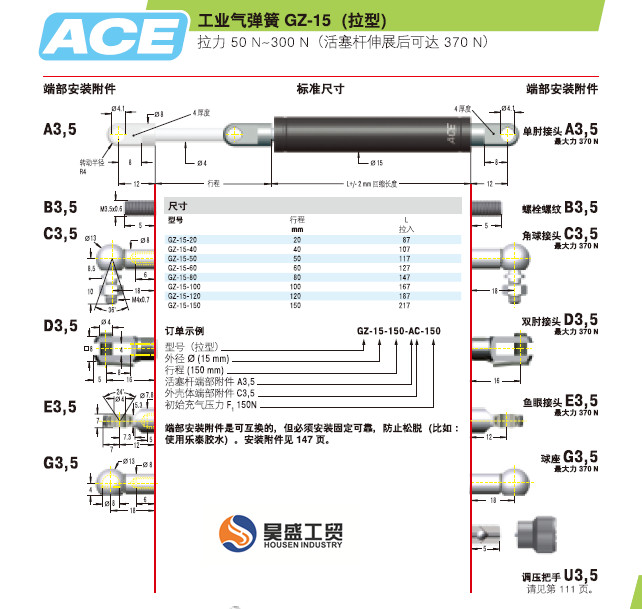 ACE緩沖器,工業(yè)氣彈簧GZ-15